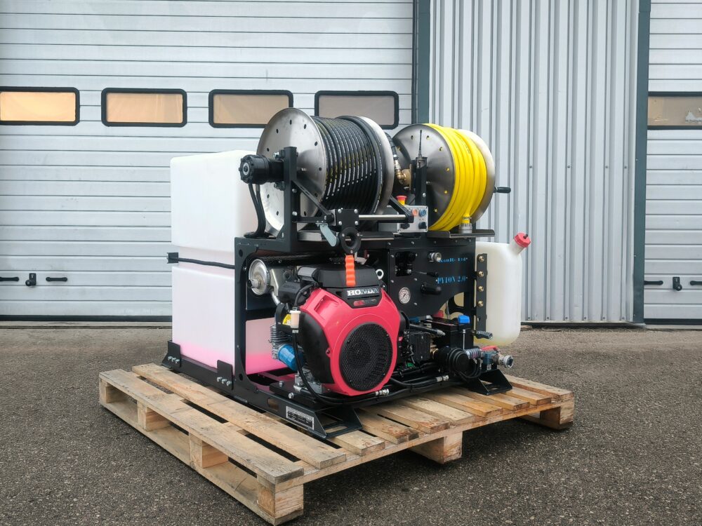 Устройство PYTHON 2.0 оснащено надежным насосом высокого давления от известного европейского производителя UDOR из Италии. Насос с керамическими поршенями, благодаря которым можно работать с устройством с использованием горячей воды до 70 градусов по Цельсию. Он также может управляться одним человеком из управления панелью или также с дистанционным радиоконтролем.